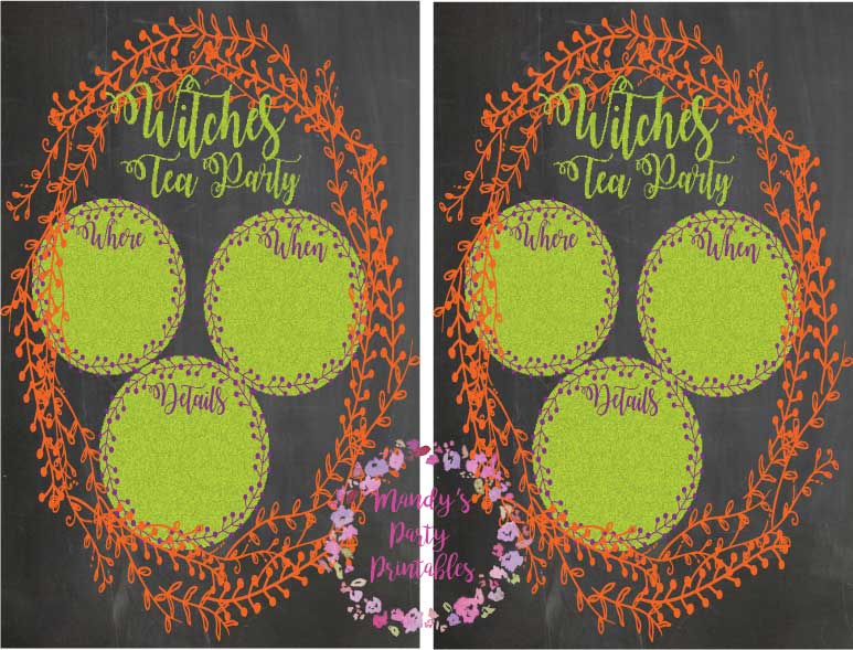 These invitation can be found here. You can print them out and then fill in the details for your witch soiree. Oh, and I would love pictures from your party to feature on the website.