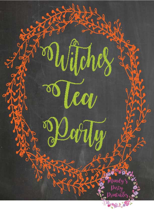 I can’t even tell you…how much I LOVE Halloween. We are getting ready to have a Witches Tea Party and I have some free printables for you to use for your own tea party with your favorite cackling, broom-flying, witchy friends. First, here is tea party sign for you to print.
