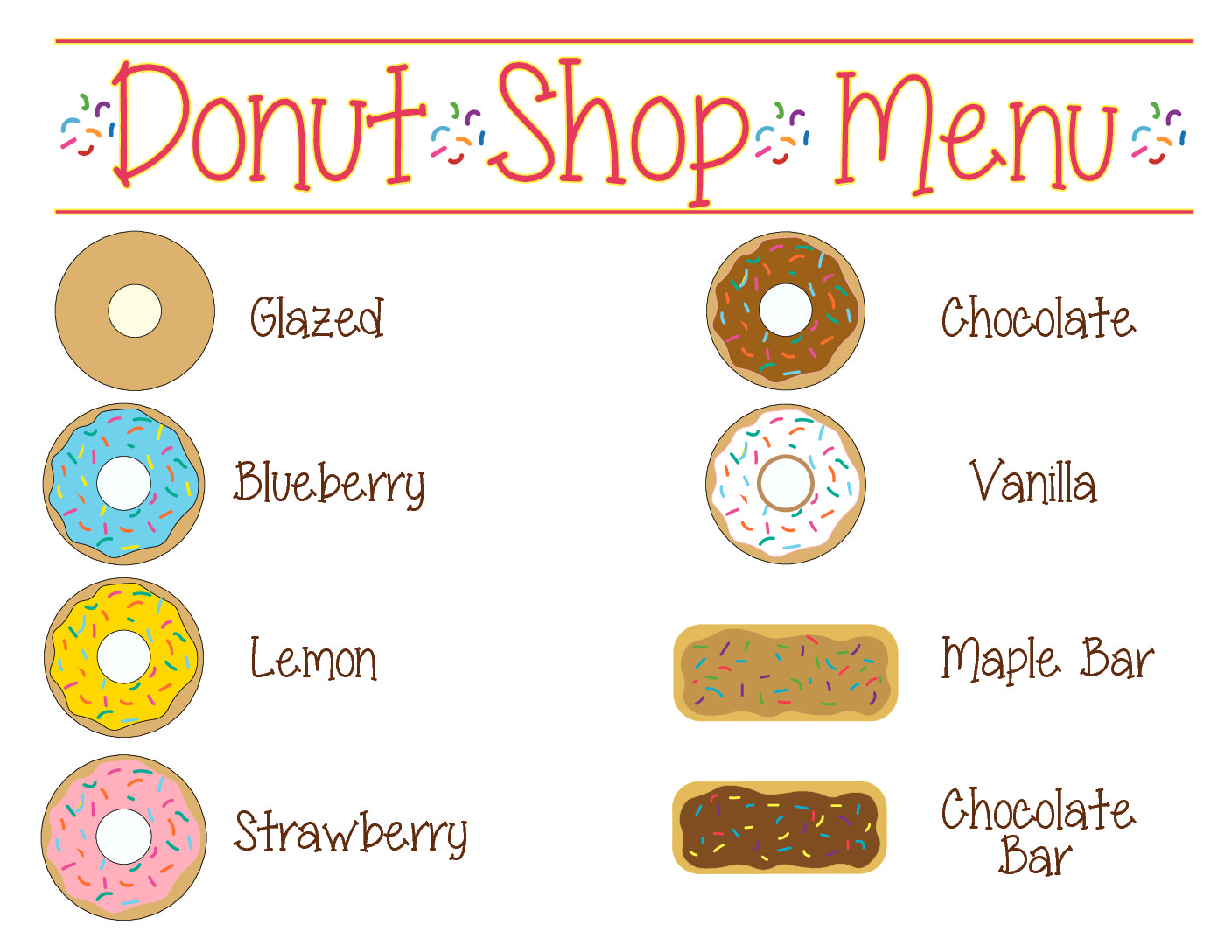 - Donut shop menu 8.5×11 sign