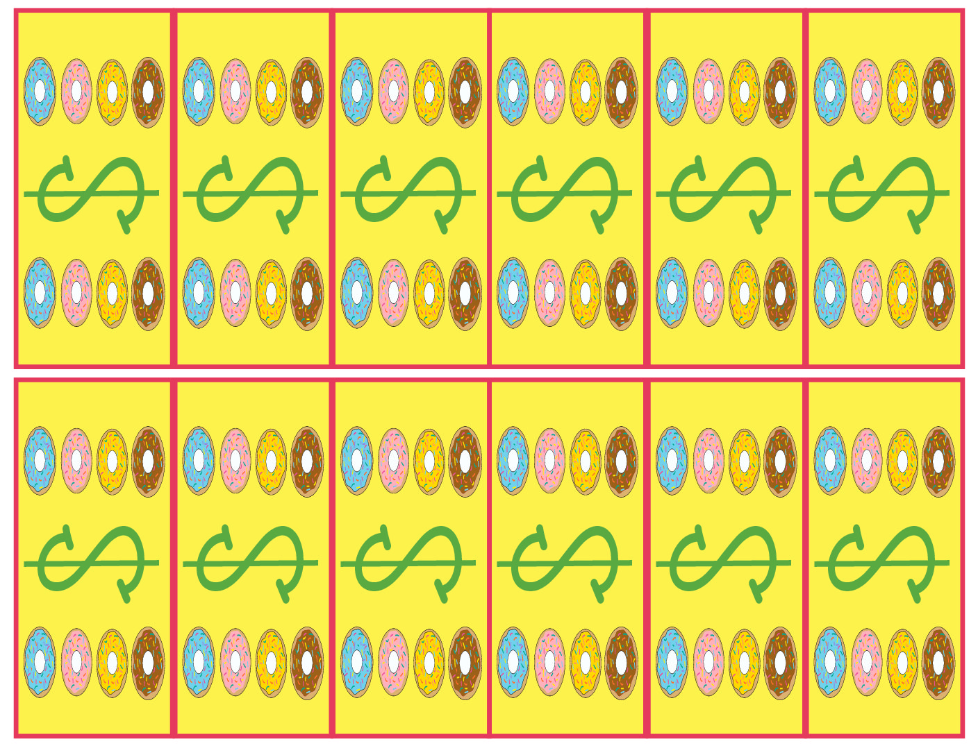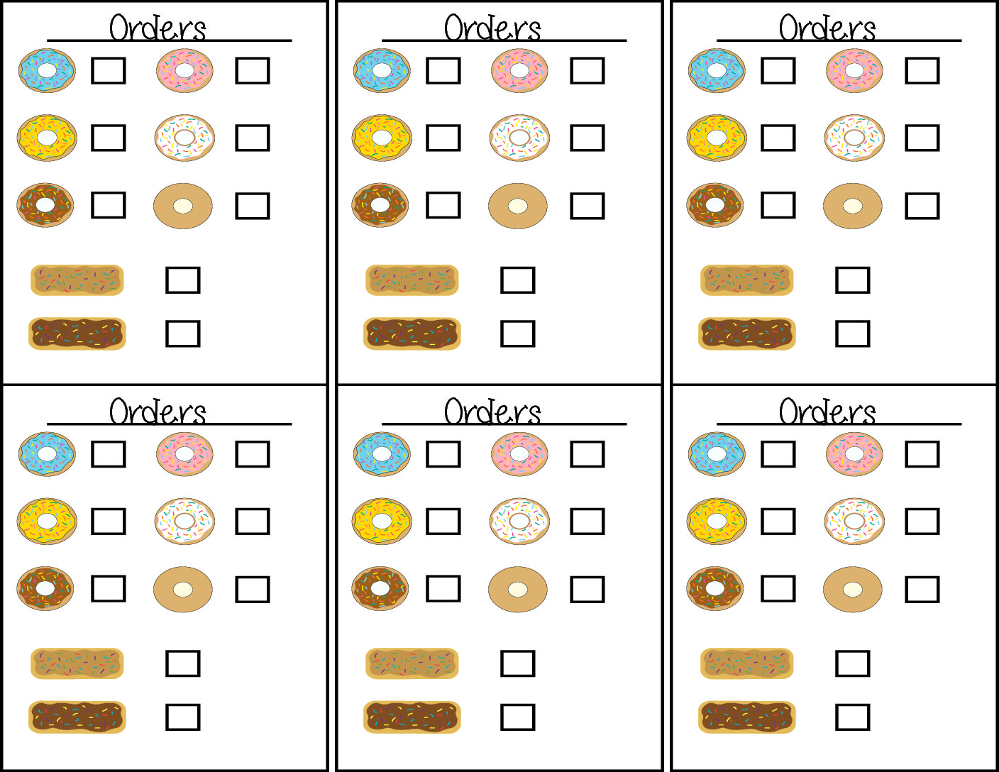 - Three sheets of printable donuts for pretend order fulfillment