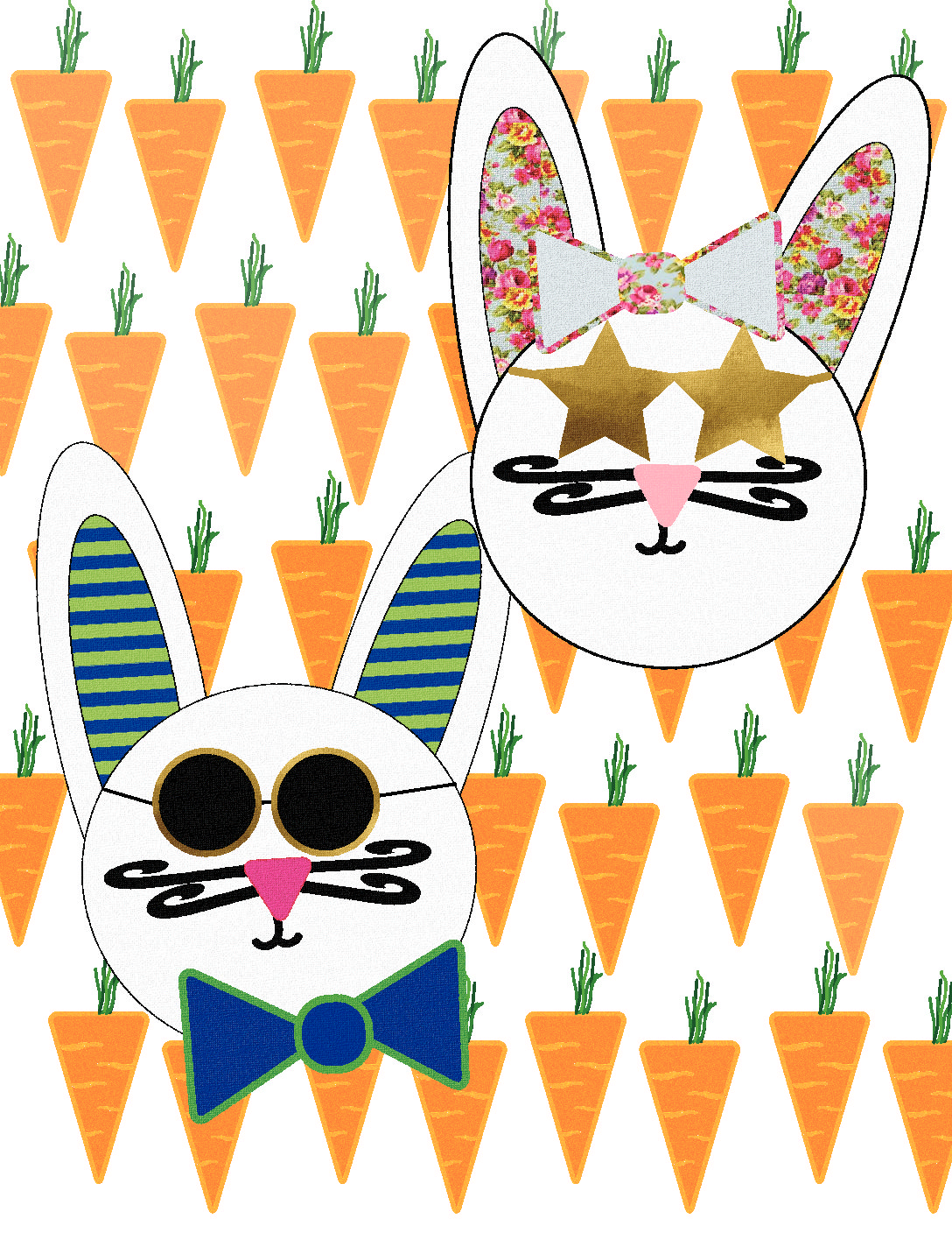 Instead of not sharing my darling Hipster Bunny Rabbits, because I haven’t followed through with the fabulous bash created in my mind. I am doing it. I am sharing them here, for you, to make something fun and pretty.