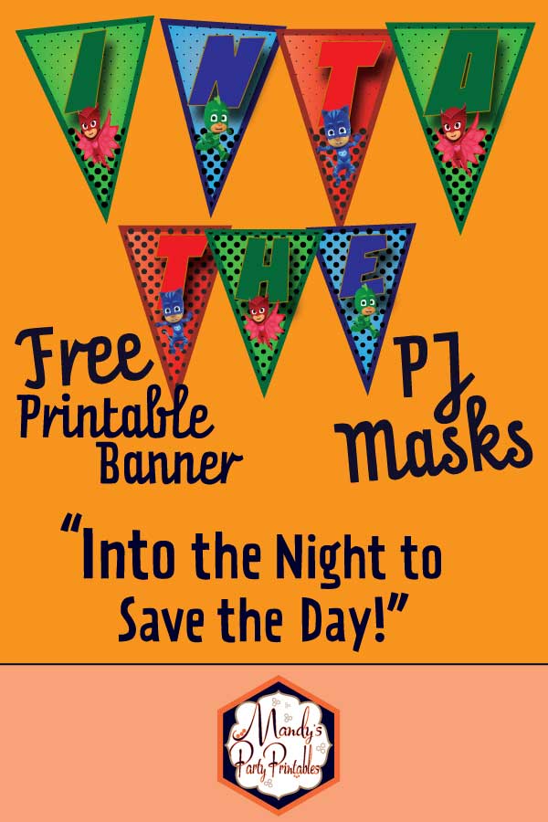 PJ Masks are on their way! To your party to save the day! If you are planning a PJ Masks superhero party for your little superhero, then you definitely need this FREE “Into the Night to Save the Day” PJ Masks banner.
