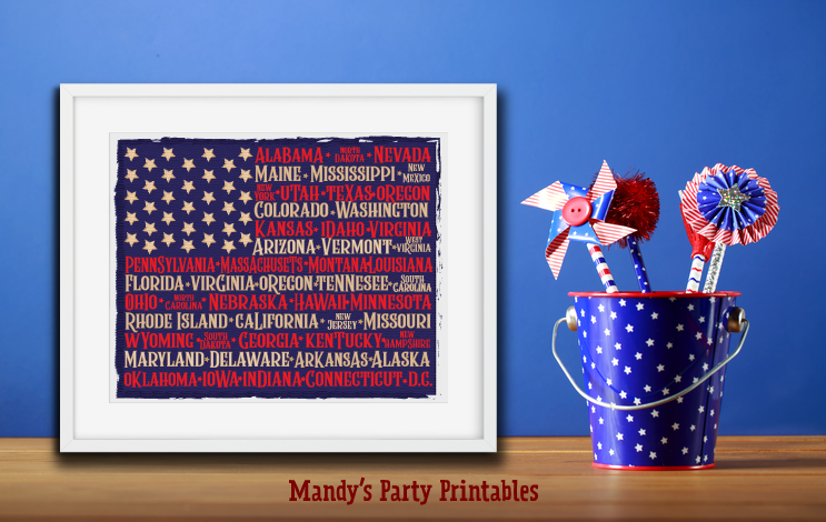 Getting ready for summer and the upcoming season of patriotic holiday bliss is so much fun! I have a flag affixed to my front porch post and it is waving in the breeze as we speak. I am busting out the Americana pillows this weekend and I might even brush off the red, white, and blue wreath to complete my patriotic porch. To round out my DIY Memorial Day or 4th of July decor I always download a free printable, like this Free Printable 4th of July Flag with all of the names of the states. You can also find great patriotic printables here.