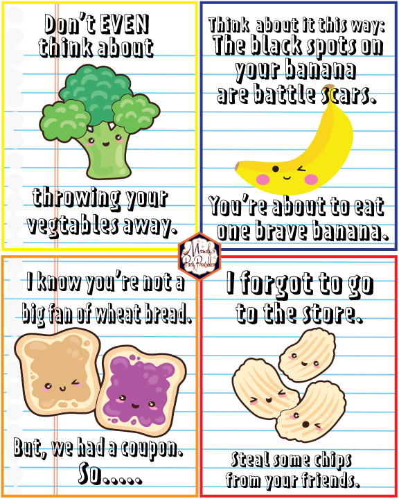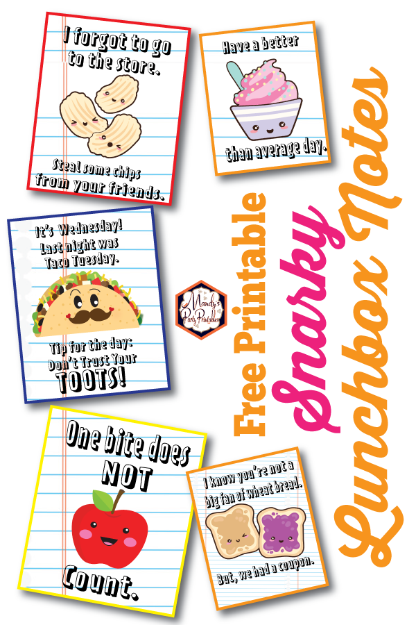 See, I am not that kind of mom that can keep up the sweet cutsie thing. So, when I see these lunchbox notes I thought I love those, but those just aren’t me. I began to think, what is me? Behold, the Free Printable Snarky Lunchbox Notes.