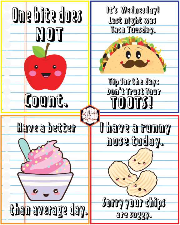I keep seeing all of these super adorable printable lunchbox notes. I once wrote a note to my son and left it in his lunchbox. When he got home from school he said, “Mom, just don’t do that again. Sorry. I love you though.” I was happy. You’d think I would be sad or hurt, but I wasn’t.