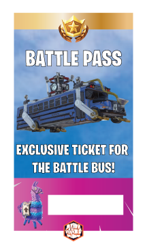 So, imagine your party guests arriving to find their own Battle Pass customized with their own name, hanging on a lanyard ready to be placed on their neck as they enter the bash.