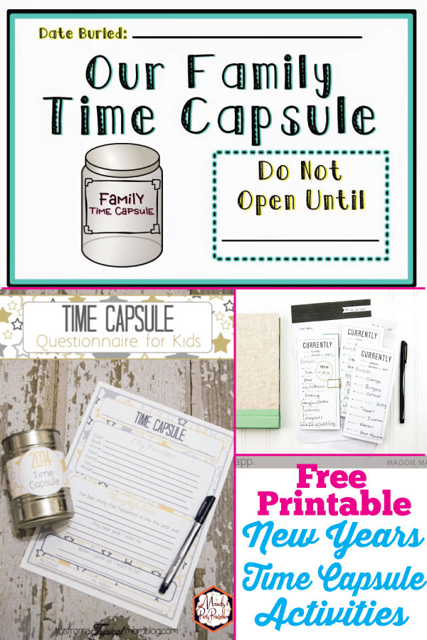 Pretty Providence has this time capsule printable question sheet that you can help your younger children fill out or have them fill it out themselves if they are reading and writing well. They also have a tutorial for a soup can time capsule using the free printable year wrappers.