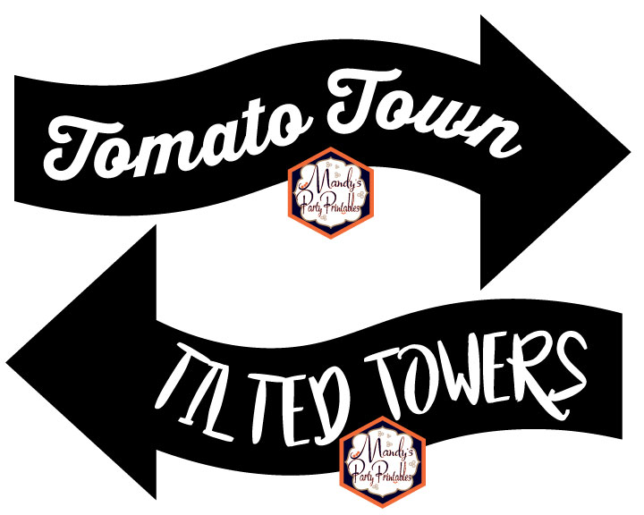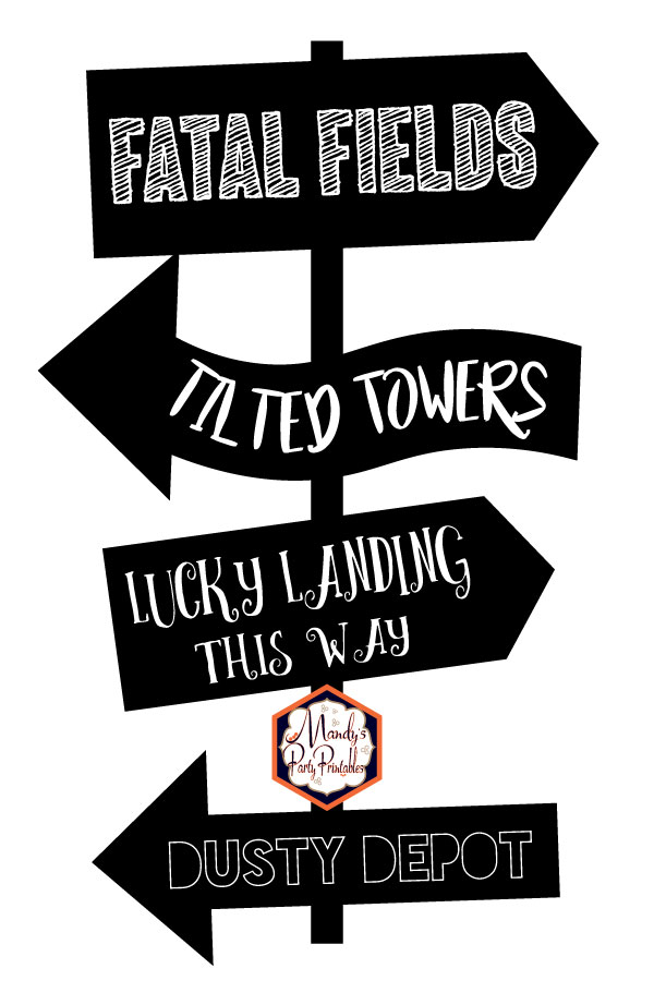 The best way to print out and affix these signs to your directional pole is to print them out on cardstock. If you will be outdoors and worry about inclement weather, or you want to save them for another party, you can laminate them. After you print the signs and cut them out you can glue them to the pole or you can use velcro strips to affix them to the pole. If you want a little more substantial sign, after laminating affix them to foam boards like these and cut those out as well.