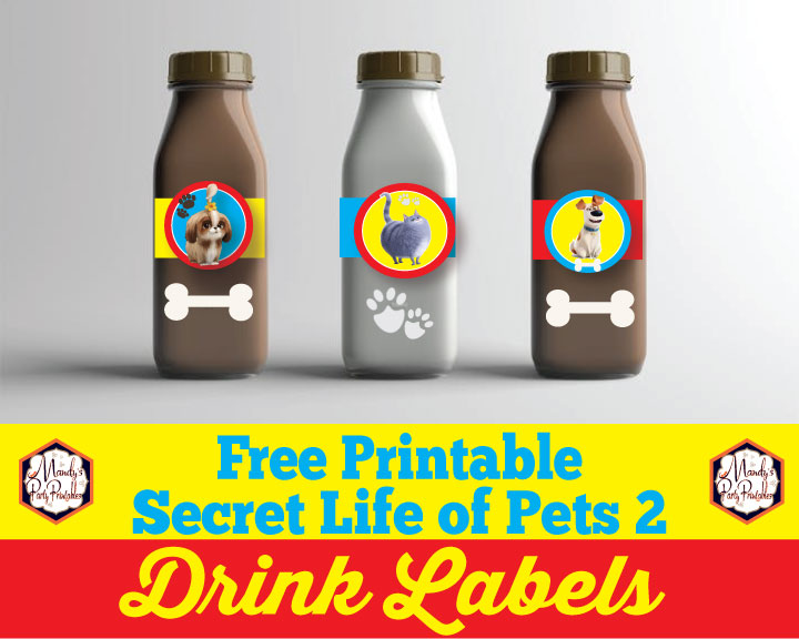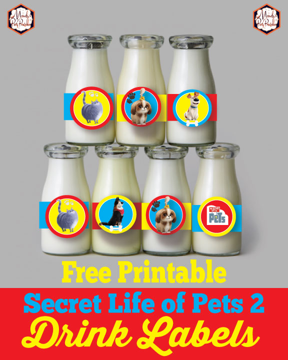 If you want to make a party that your pets would want to crash, you need to have some perfectly printable and perfectly FREE The Secret Life of Pets 2 Party Printables! This collection starts with these 3″ round circles. You can print them off to create cupcake toppers, or you can do what I did and print them on sticker paper to stick on milk bottles for the party. You can also place them on swag bags and customize plates and balloons as well.
