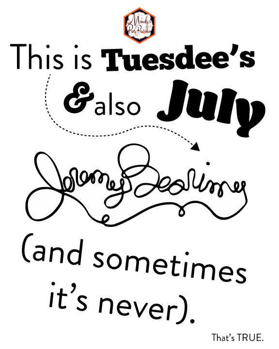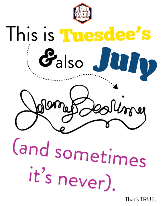 Come with me as I plan my 40th birthday bash! Imagine it! A huge Welcome! Everything is fine. sign, uh, welcoming, my guests. Then a party table with “WTFork” and “Jeremy Bearimy” signs. Not to mention the shrimp bar with the shrimp soda machine sign to direct the guests on how to choose the best shrimp (pssstt….pick the coca-cola shrimp). Plus so much more!!