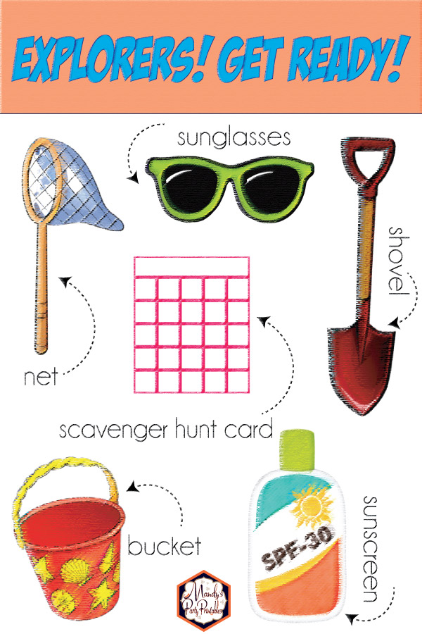 All explorers need to be prepared. When you head out into the sun, don’t forget to protect your skin with some UV-fighting sunscreen. Keep your eyes happy with some stylish sunglasses; bonus points if you use polarized sunglasses because they will help you see the shells easier than non-polarized glasses. Bring a bucket to store your shell discoveries, a shovel to dig around to find those hidden shells, and don’t forget the printable shell scavenger hunt card and identification cards.