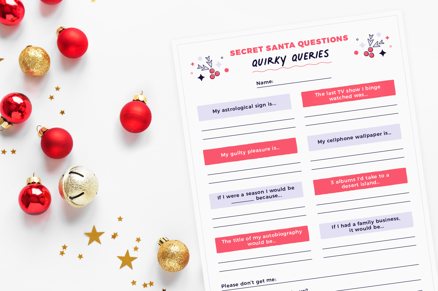 I love all things quirky, and if you want to have a few laughs and create a fantastic list of gifts to give, choose this Secret Santa questionnaire!